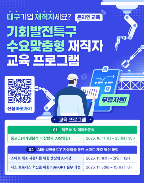 [교육생 모집] 2025년 기회발전특구 수요맞춤형 지원사업(대구) 재직자 교육(2차공고)