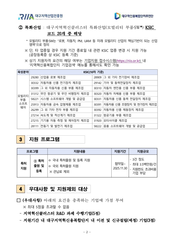 [대구]2025년 대구지역혁신클러스터(비R&D) 기업지원(특허지원) 수혜기업 모집 3차 공고