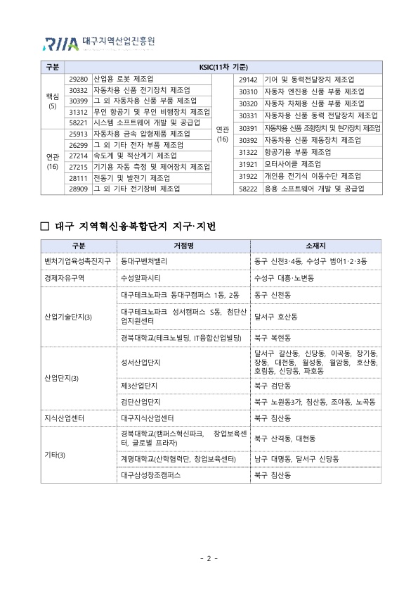 붙임3. 대구 지역혁신융복합단지 특화산업 코드 및 지구지번.pdf