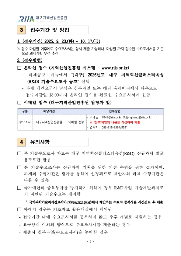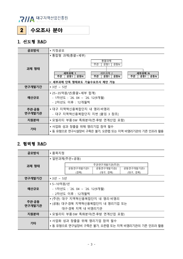 [대구]2026년도 대구 지역혁신클러스터육성(R&D) 기술수요조사 공고
